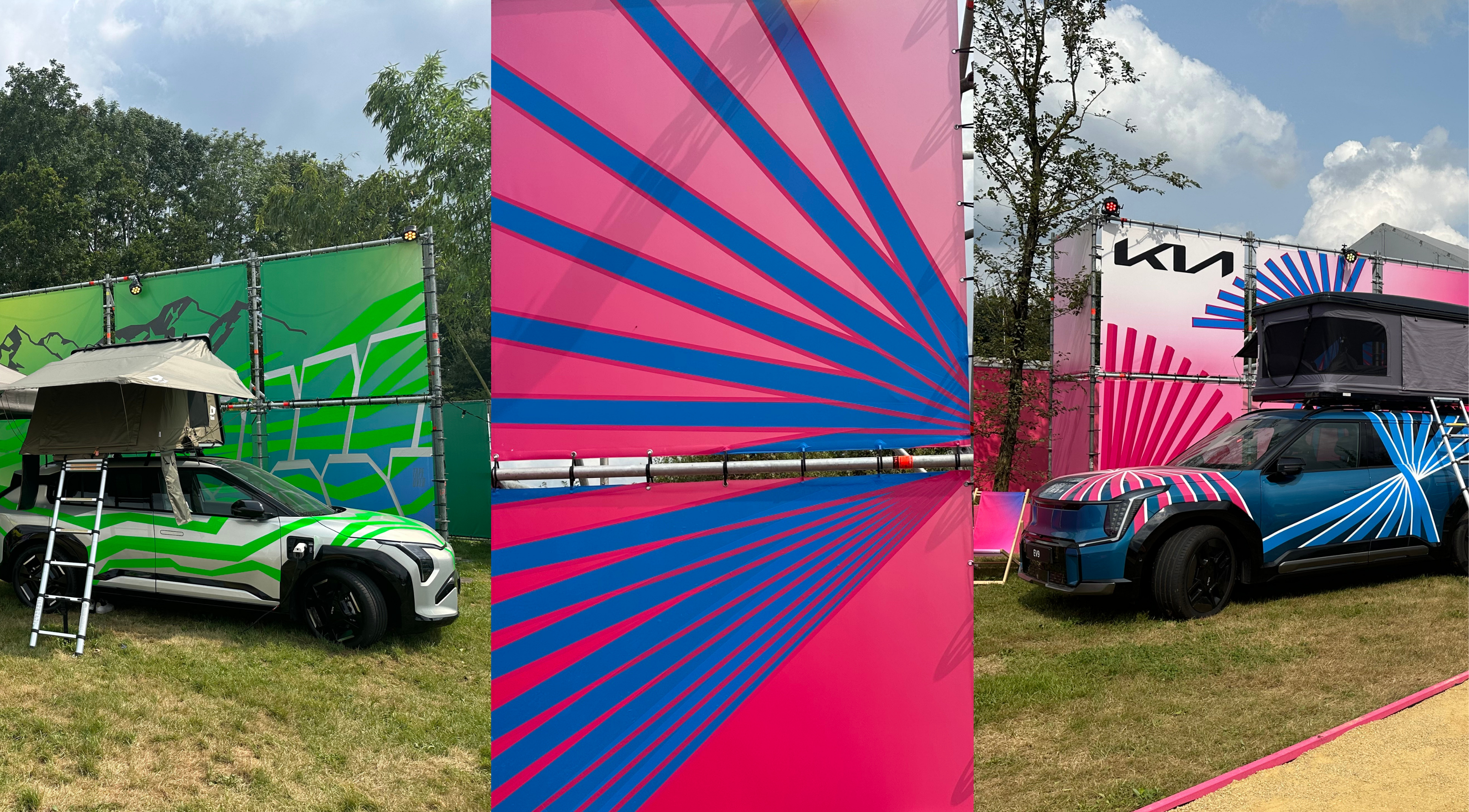 La instalación «Electric Tapes» transformó el área de la marca KIA en un destino creativo destacado en el Lowlands Festival. La actuación de arte con cinta adhesiva en directo llamó la atención, invitó a la interacción y transformó los vehículos eléctricos de KIA en declaraciones visuales.